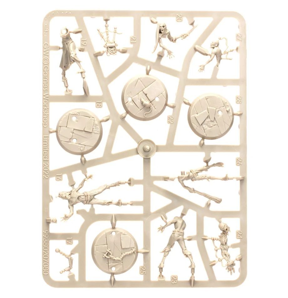 – 7x push-fit Exiled Dead miniatures – no glue required to assemble, cast in a cadaverous grey to stand out even when unpainted