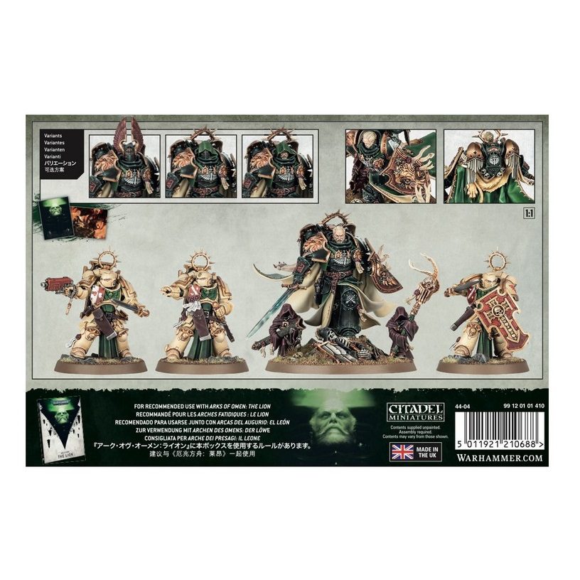This boxed set builds the Lion himself, available here for the first time alongside an honour guard of Bladeguard Veterans – elite warriors equipped with imposing shields and the finest weapons of the Chapter. Lion El’Jonson is a jaw-dropping miniature befitting his legendary status, striding over battlefield rubble in ornate knightly armour decorated with personal heraldry and the symbols of the Dark Angels. He’s joined by a pair of mysterious Watchers in the Dark, and can be built with one of four different head options – a bare head, a hooded head, a crested helm, and a hooded helm.