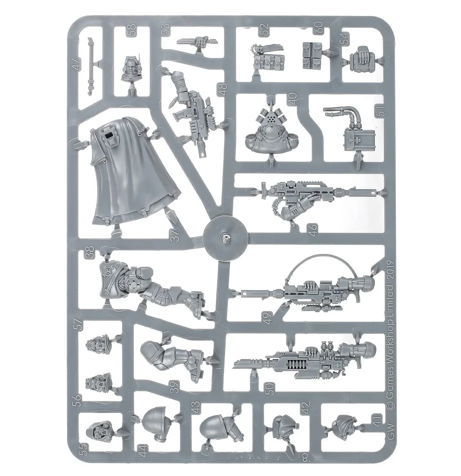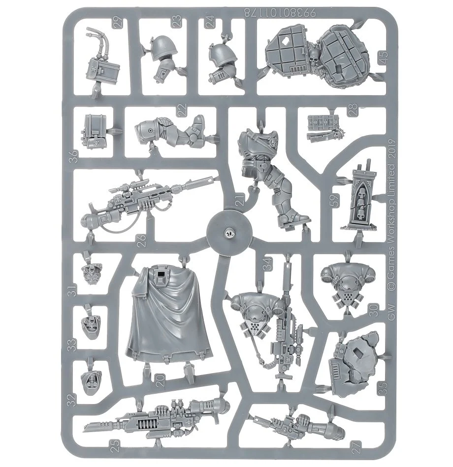 Each model in this squad can be armed either with a las fusil, which is perfect for taking out the toughest targets, or a bolt sniper rifle, which provides a choice of ammunition to suit any situation. The Sergeant can also be armed with an instigator bolt carbine. All three models can be assembled with or without helmets and the kit comes with a number of optional parts allowing you to individualise the unit.