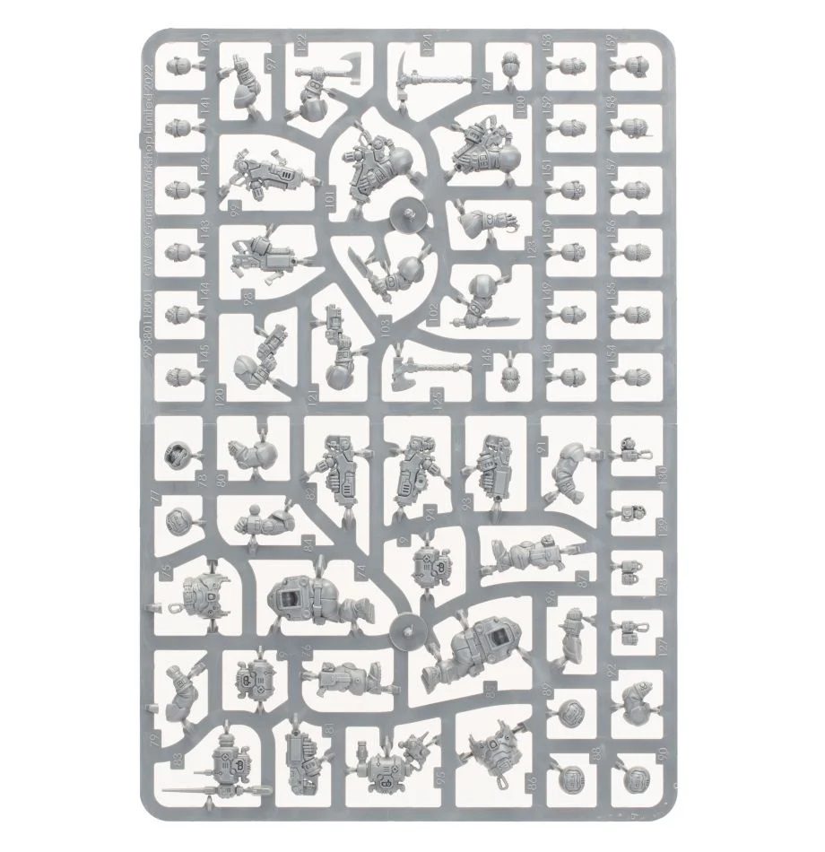 This set is comprised of 169 plastic components, and is supplied with 10x Citadel 28.5mm Round Bases and a Leagues of Votann Transfer Sheet with 555 numerals, runes, and markings for prominent Leagues. These miniatures are supplied unpainted and require assembly – we recommend using Citadel Plastic Glue and Citadel Colour paints.