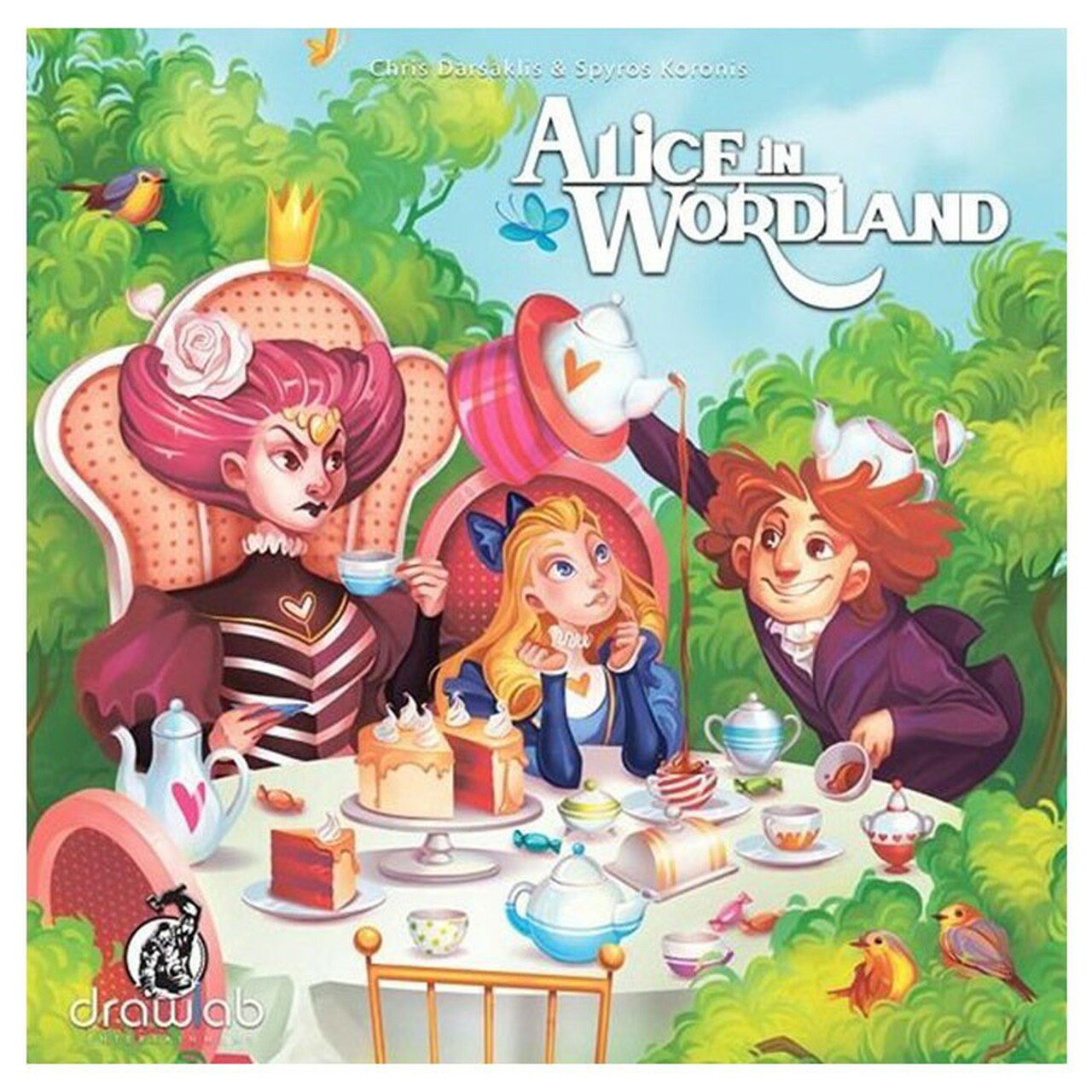 In the party game Alice in Wordland, players take the roles of characters from Alice in Wonderland, each with their own unique abilities and all invited to the tea party of the Queen of Hearts. They have to follow her mad rules of discussion, saying words in particular themes under the pressure of time.