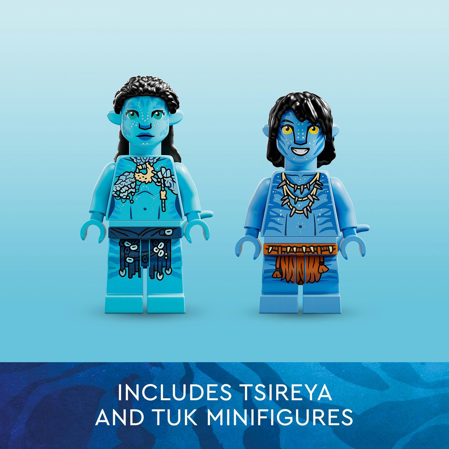 - What’s in the box? – Everything you need to create a posable ilu figure, Tsireya and Tuk minifigures, a Pandoran coral-reef setting and a display stand