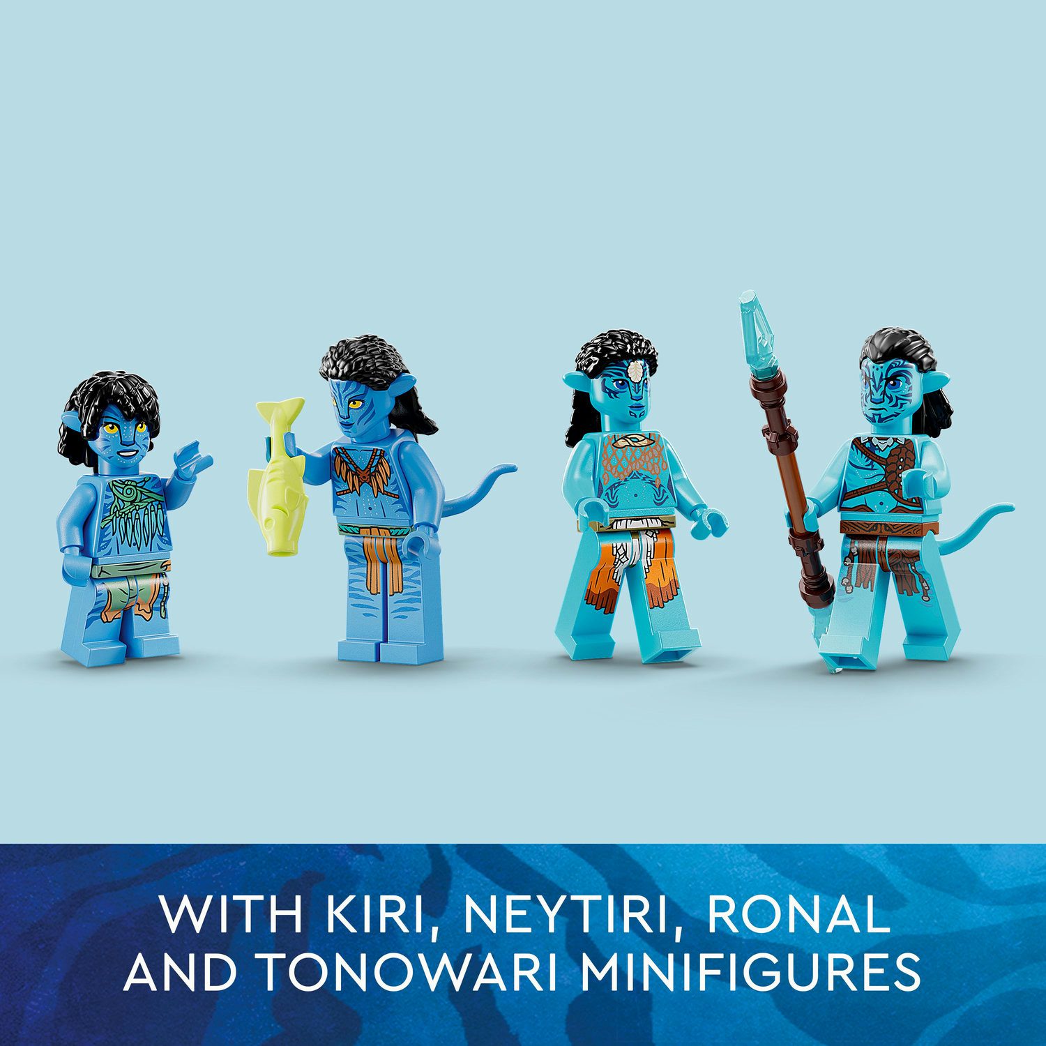 - What’s in the box? – Includes a Metkayina village home with details from the Avatar: The Way of Water film, plus a canoe, Pandoran reef setting and Neytiri, Kiri, Ronal and Tonowari minifigures
