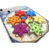 Plastic overlays hold the pieces snugly on the player board, giving every player the confidence to know their tiles are not moving.