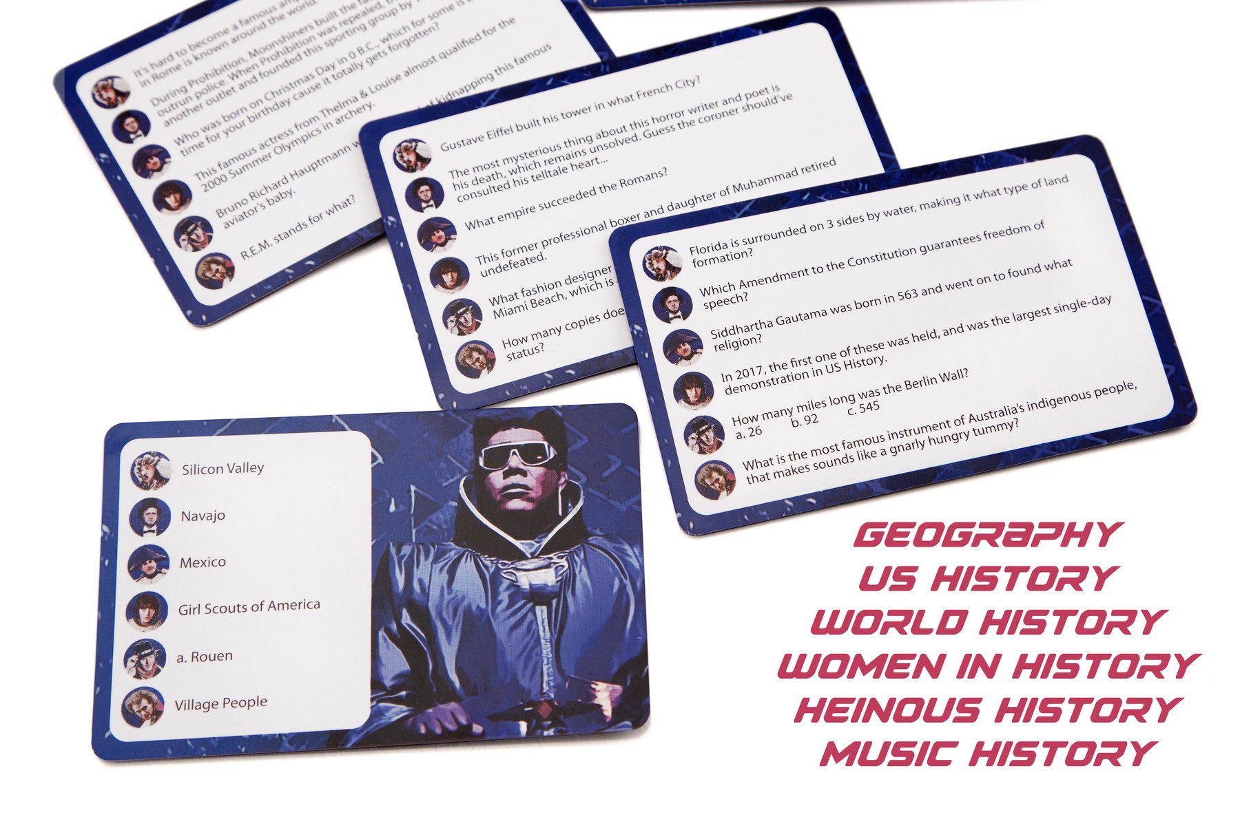 Test your knowledge of historical trivia by answering fun questions about World History, Women in History, Heinous History, and more. Collect iconic historical figures with correct answers and get to your final exam in time to save the world. And it all fits in a shiny phone booth that can travel with you wherever you go! It includes 1200 trivia questions, 100 conversation-starting Wyld Cards,