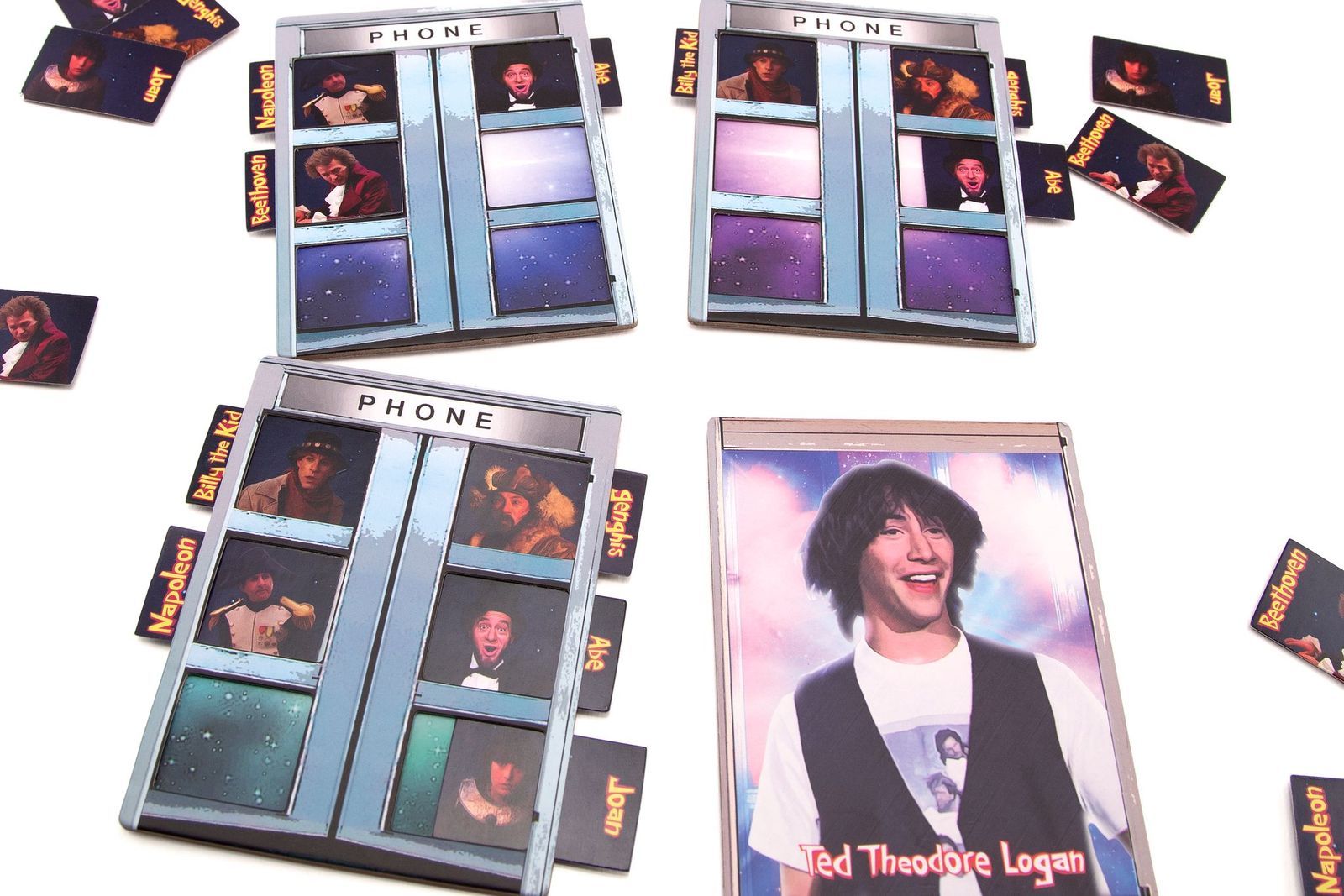 4 phone booths, and 4 magnetic player pieces. Party on, dudes!
