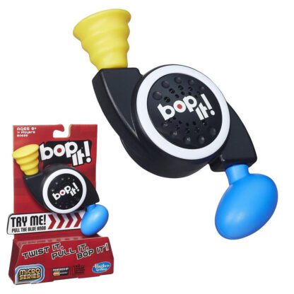 This compact version of the classic Bop It! game is both portable and fun! Keep up with action commands and play against friends or yourself!