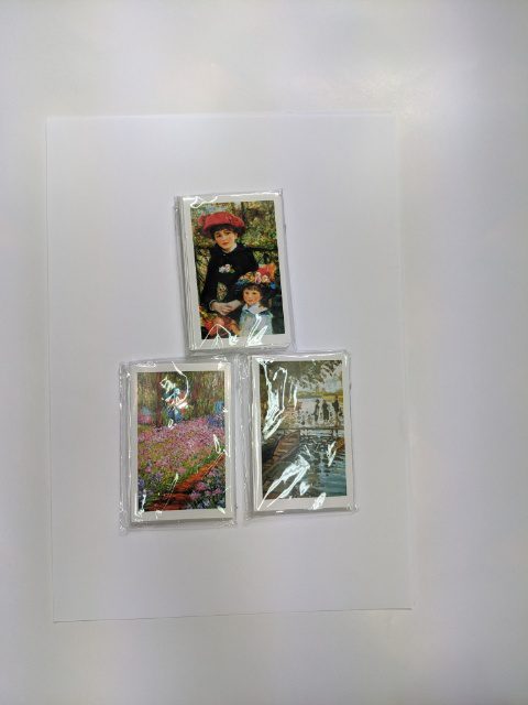 Set of 12 tallies for either 2 or 3 table Party bridge. Covers with beautiful impressionist masterpieces.