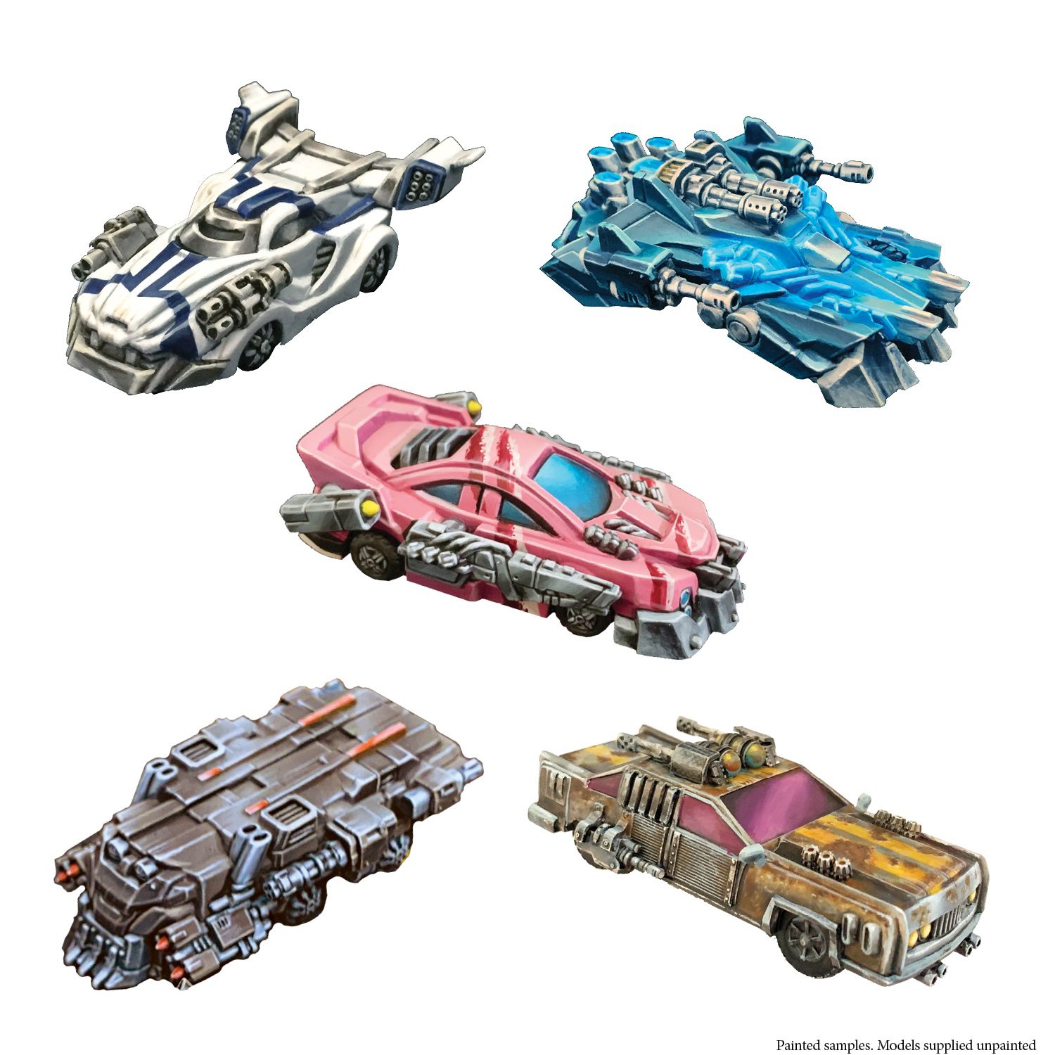 - Five pre-assembled, unpainted miniatures: Spark, Pure Energy, Redline, Sledge, and Apollo!