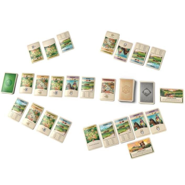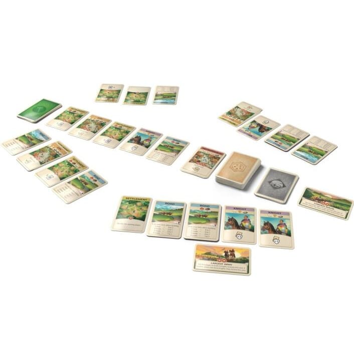 Players gather resources by drawing cards, construct developments from a common set of available choices, and engage in negotiations and trades with fellow players or the bank. Trading takes on an even more significant role in this version, as players who trade during another player’s turn are rewarded with an extra resource card!