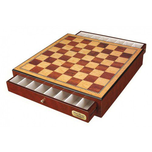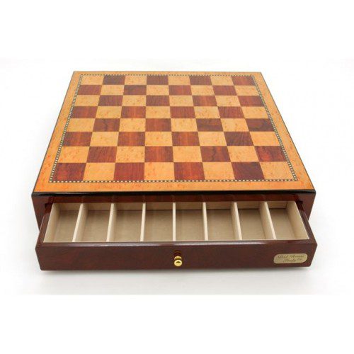 Dal Rossi Italy, Chess Box Only with Drawers 18″ Shiny Mahongany Finsh