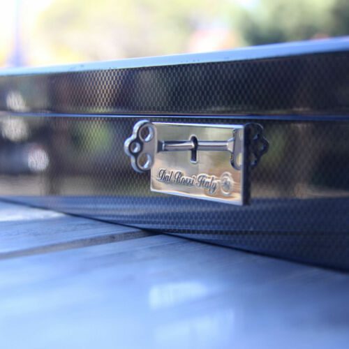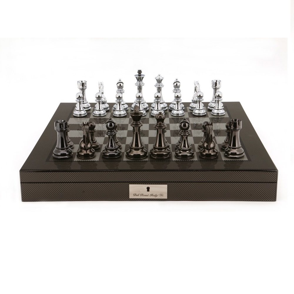 Dal Rossi 20″ (50cm) carbon fibre gloss finish chess box. Chess box is lockable with felted compartments for storage of chess pieces.