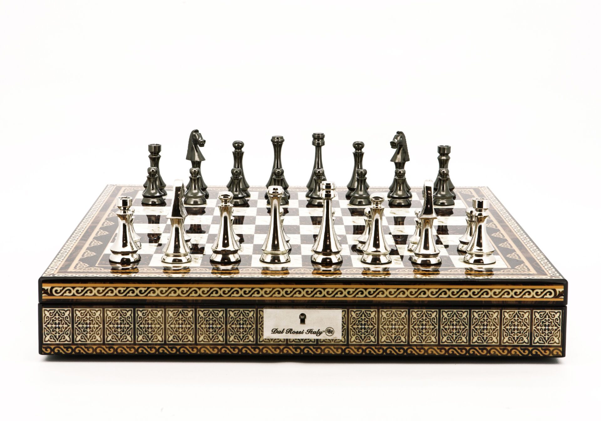 Metal Dark Titanium and Silver chessmen 85mm