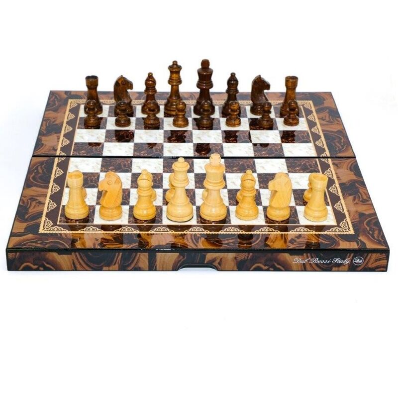 Folding 16 inch Dal Rossi Chess Set with a shiny mosaic finish.