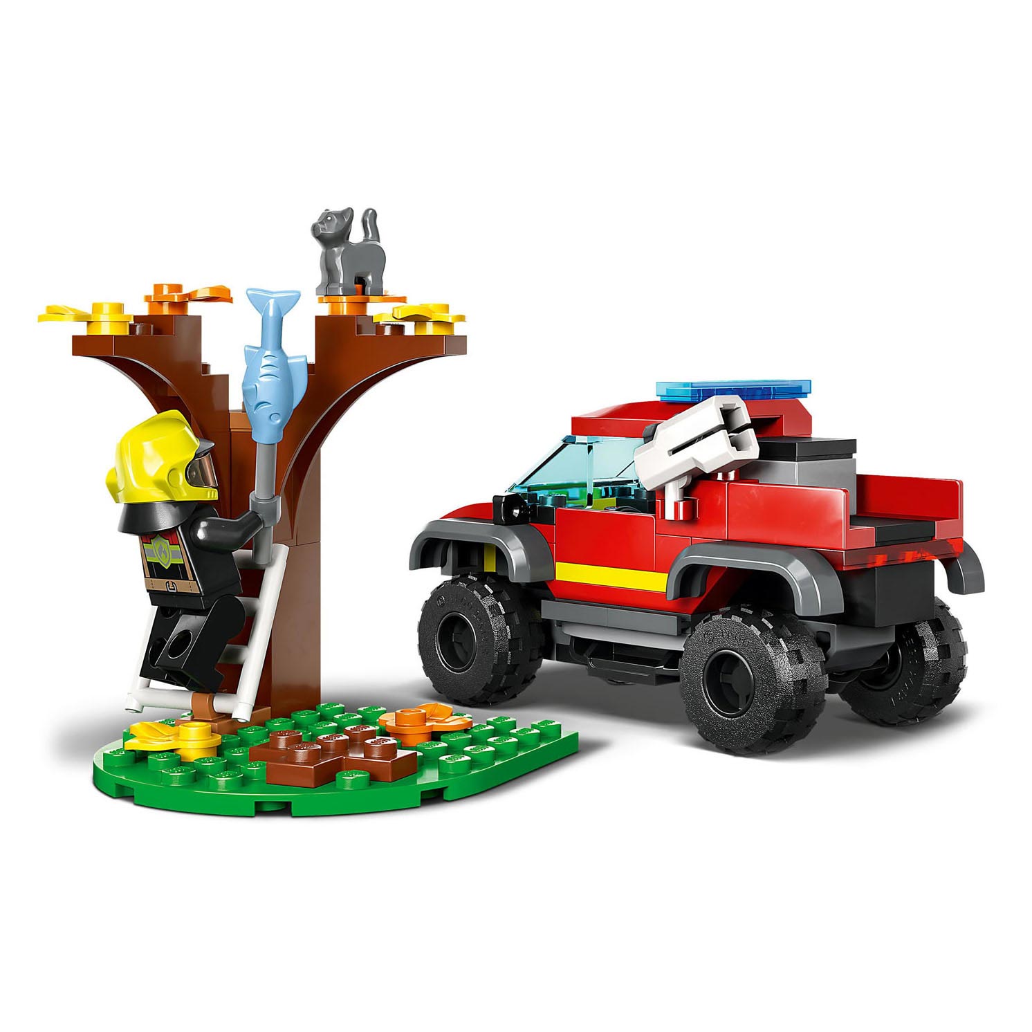 - What’s in the box? – The Fire Truck Rescue set has all kids need to build a toy 4×4 fire truck and a campfire setting with LEGO® flames and a tree, plus a firefighter minifigure and a cat figure