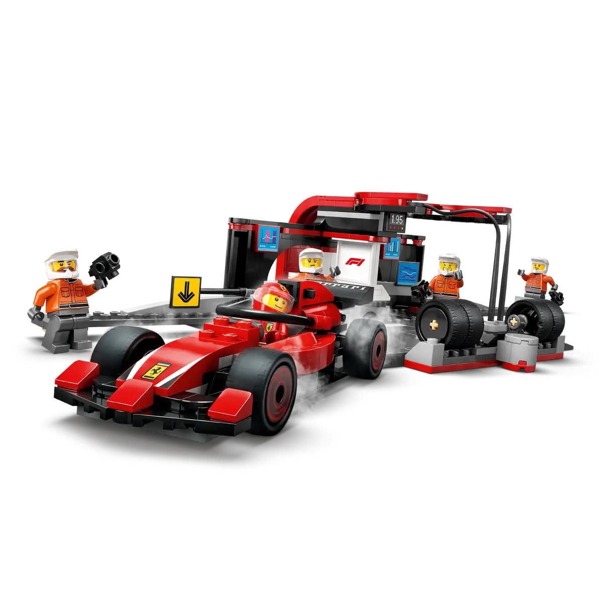 - What’s in the box? – Everything kids need to build an F1® pit and Ferrari toy car, plus driver and 4 pit crew minifigures