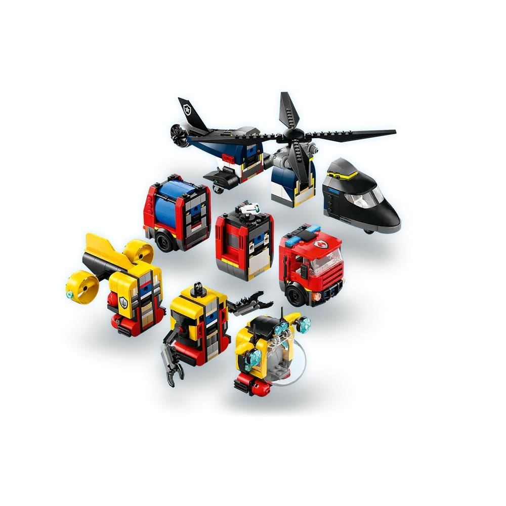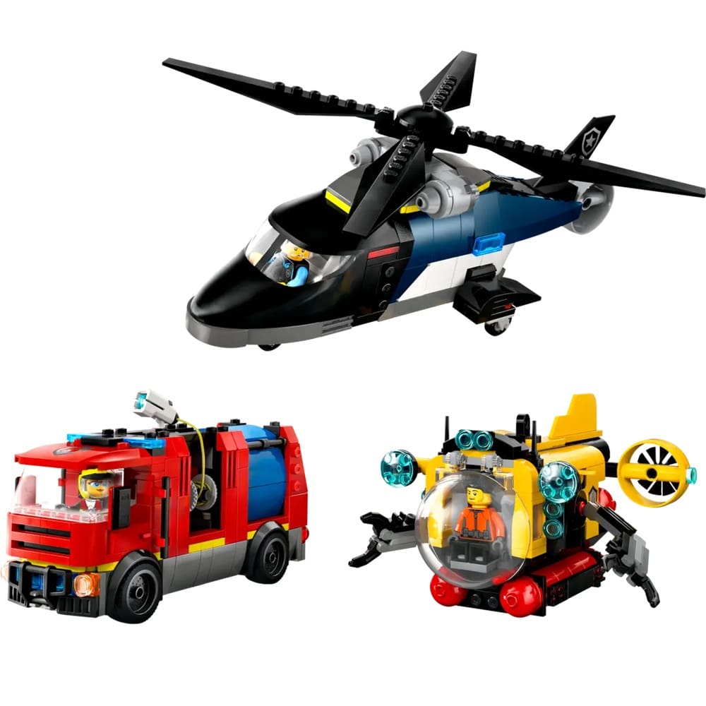 - Toy firetruck, helicopter and submarine building set – Triple the excitement with the LEGO® City Helicopter, Fire Truck & Submarine Remix set for kids aged 7 and up who love to build and create
