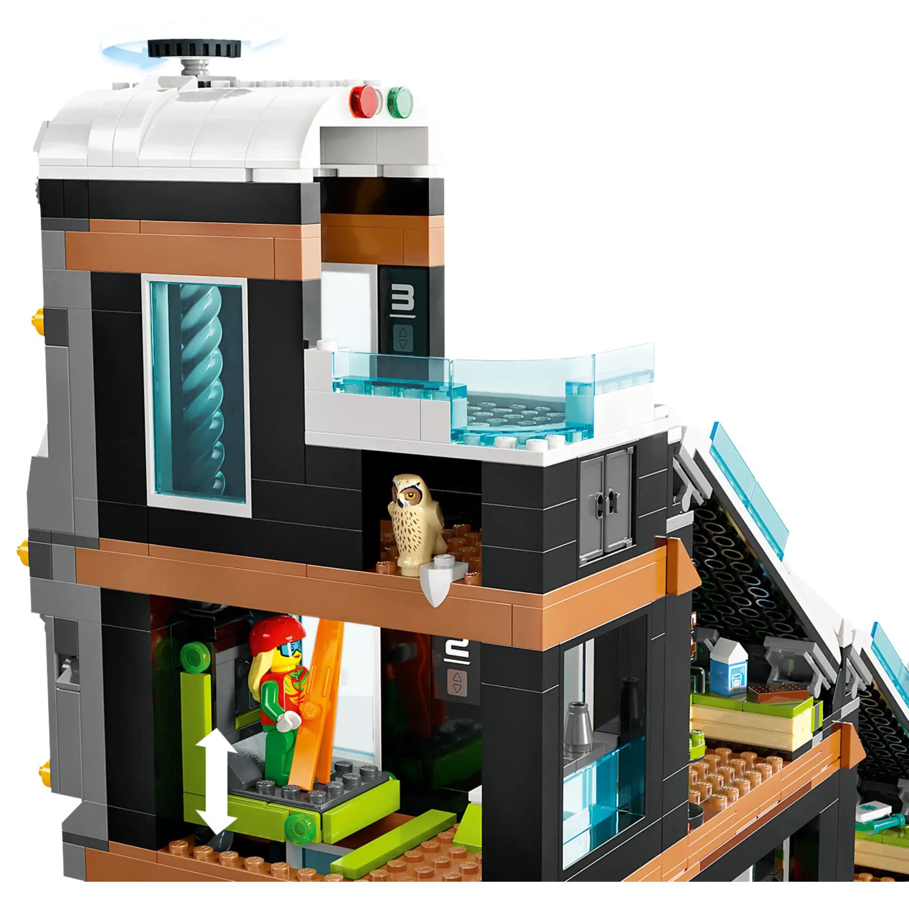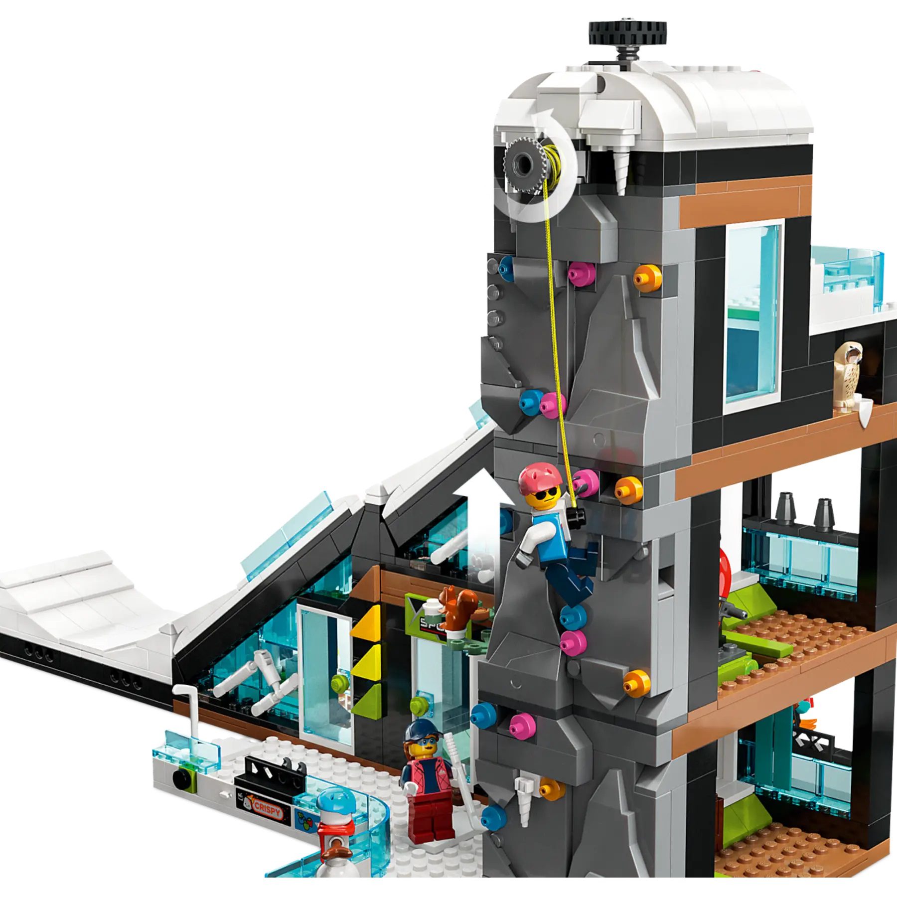 - What’s in the box? – Everything kids need to build a modular 3-level building with a winter sports shop, café and piste, plus 8 minifigures with ski accessories and snowman, owl and squirrel figures