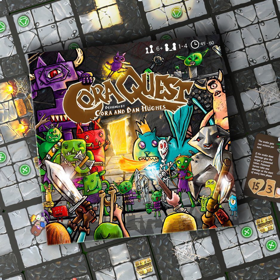 CoraQuest is an exciting and accessible co-operative dungeon crawling game for one to four people, aged six and up.