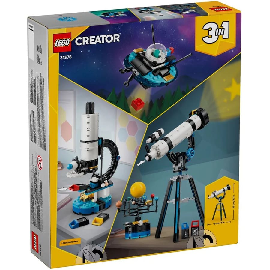- 3 IN 1 STEM TOY – The LEGO® Creator 3 in 1 Space Exploration Telescope (31378) allows kids ages 8+ to build and rebuild three different space and science toys using the same bricks.