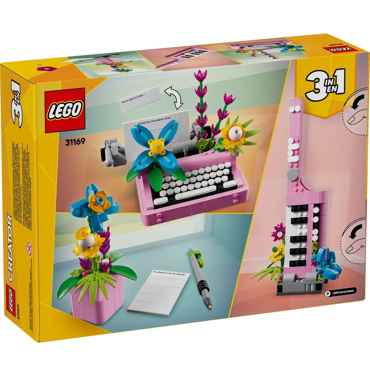 - 3 LEGO® flower set building options in 1 box – Creator 3in1 Typewriter with Flowers toy playset lets kids aged 8 and up build and rebuild 3 different models with the same bricks