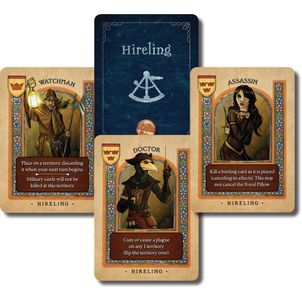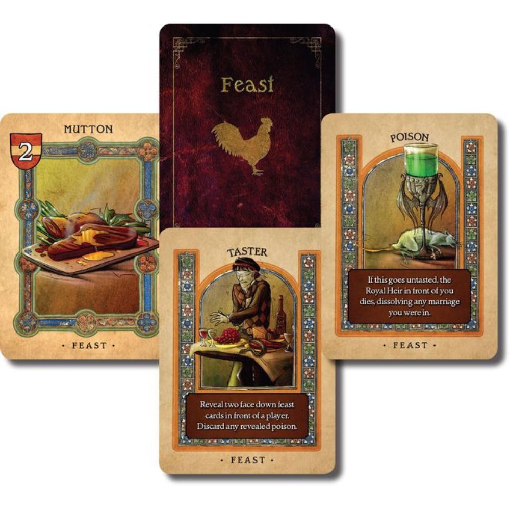 Cutthroat Kingdoms is a competitive game that features marriage-alliance team mechanisms in which strategic planning and decisive military moves can swing the course of the Kingdom. Changing territories and events make each game unique. Open negotiation, deal-making, and tabletalk are all encouraged — nay, necessary to win!