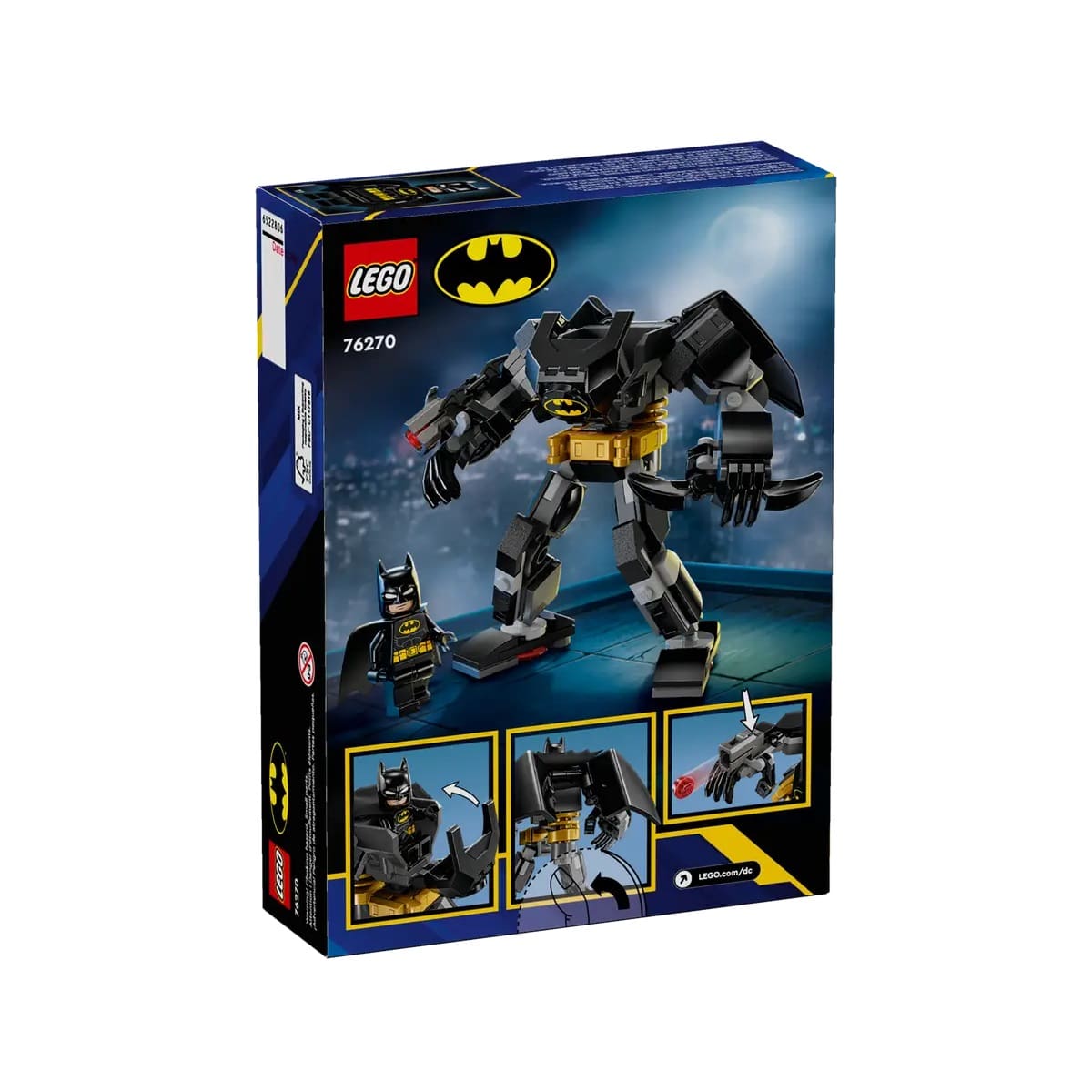 - Collectible robot toy – Includes a buildable Batman™ mech with a Batarang™, stud launcher and jetpack, plus a Batman minifigure with a fabric cape and Batarang, which can be stored on the mech’s arm