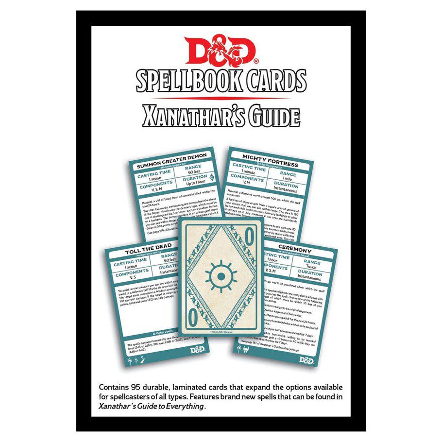 This amazing new deck of 95 cards is designed to be utilized in conjunction with the upcoming Xanathar’s Guide to Everything from Wizards of the Coast, and it’s certain to be an invaluable resource for any Dungeons & Dragons 5E spellcaster. Players can consult the entire deck when selecting new spells to learn, and after a long rest, you can set aside those spells you want to prepare for the day.