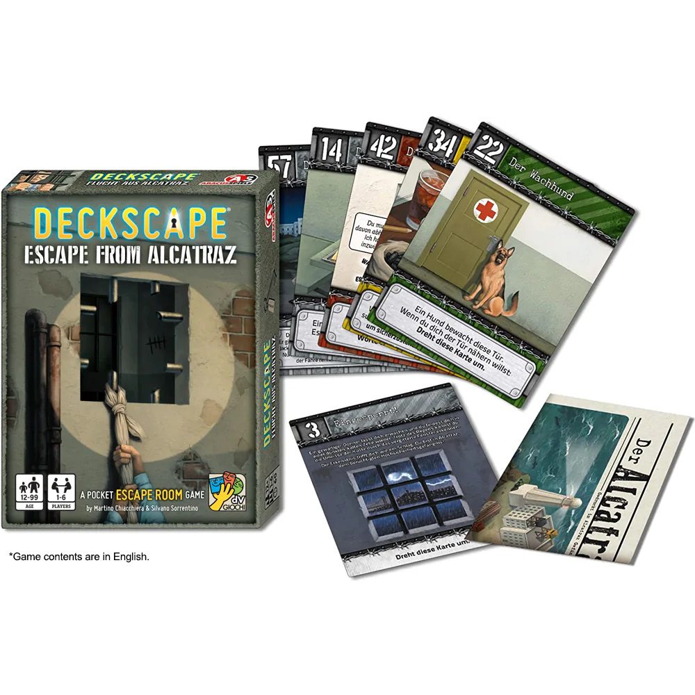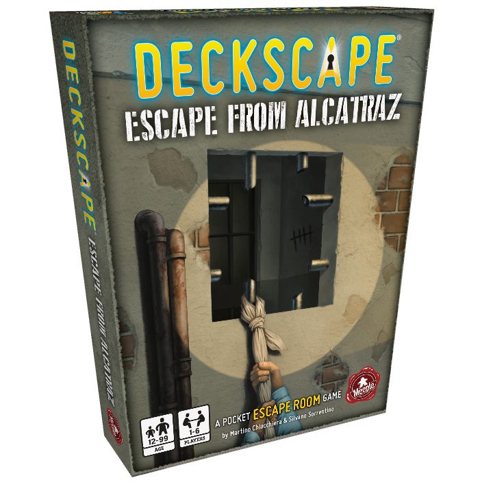 Deckscape: Escape from Alcatraz is the seventh title in a series of co-operative games inspired by real escape rooms in which a group of people is “trapped” inside a room full of puzzles and odd items. The goal of the game is to solve puzzles, understand the plot of the story, and make intelligent use of the items provided in order to exit from the room as quickly as possible.