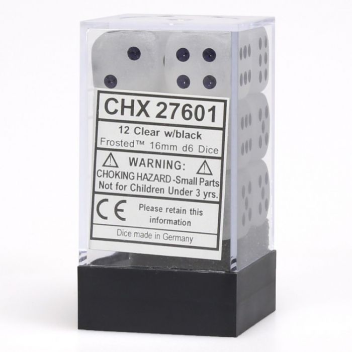 12 x 16mm D6 Chessex 6 sided dice in a clear plastic box