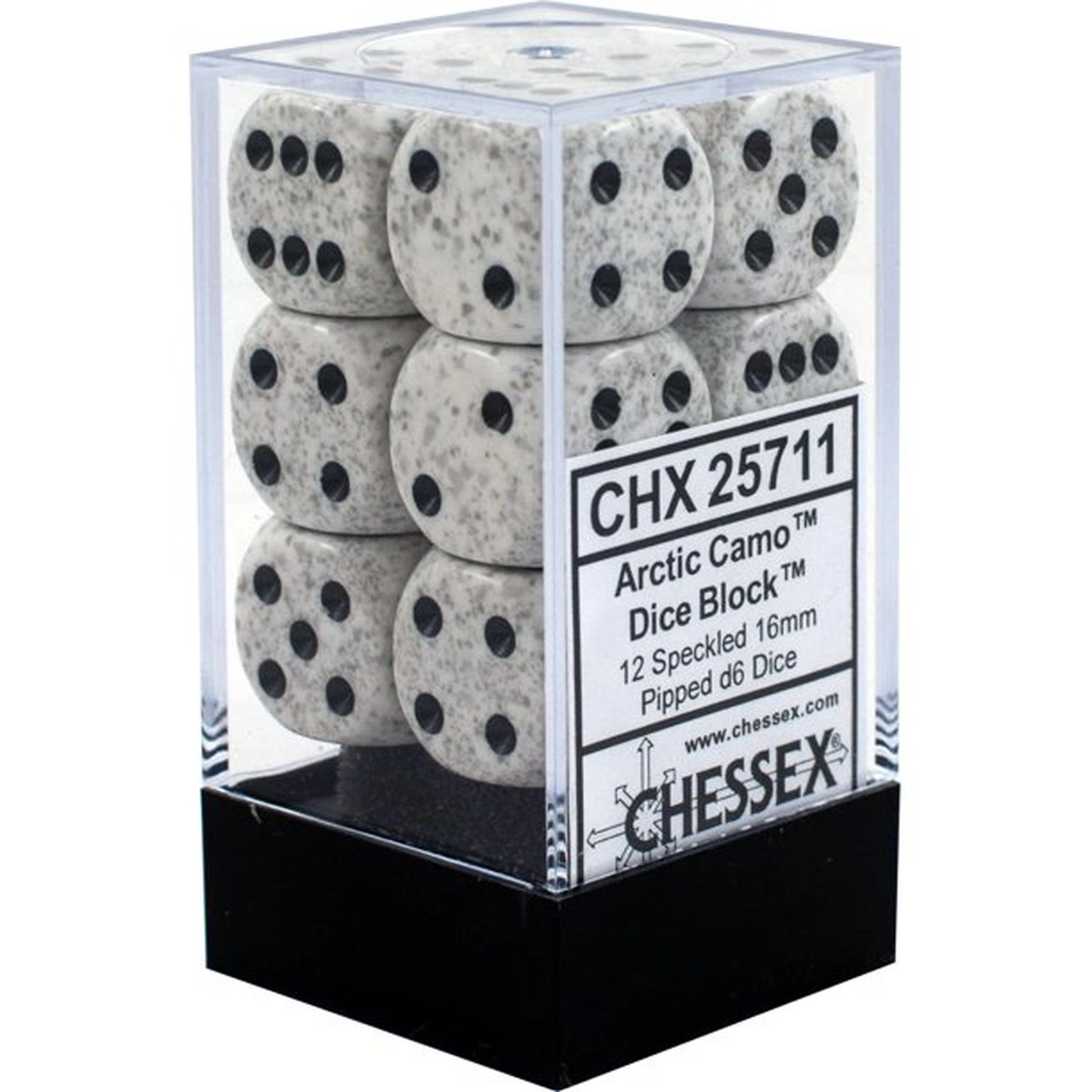 12 x 16mm D6 Chessex 6 sided dice in a clear plastic box
