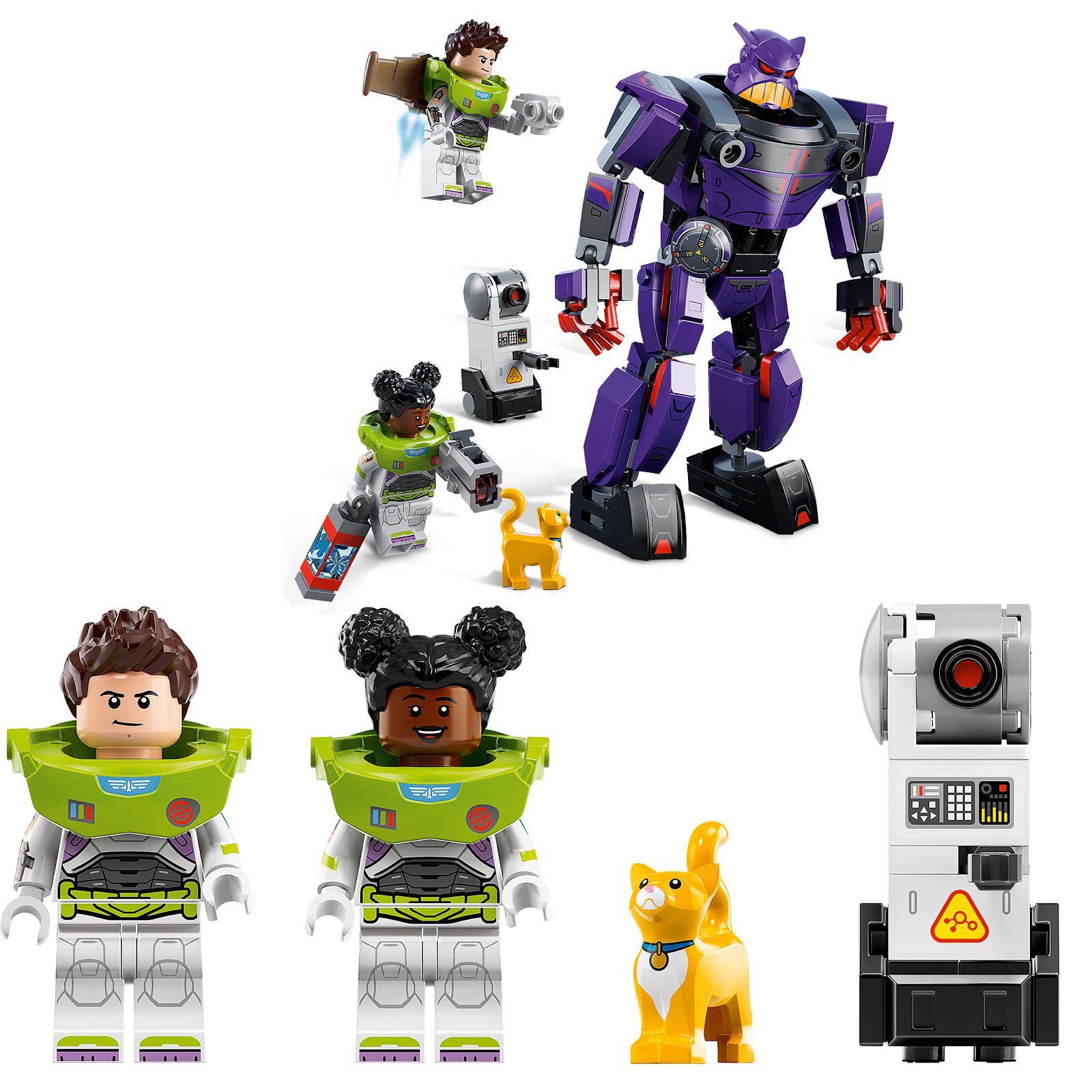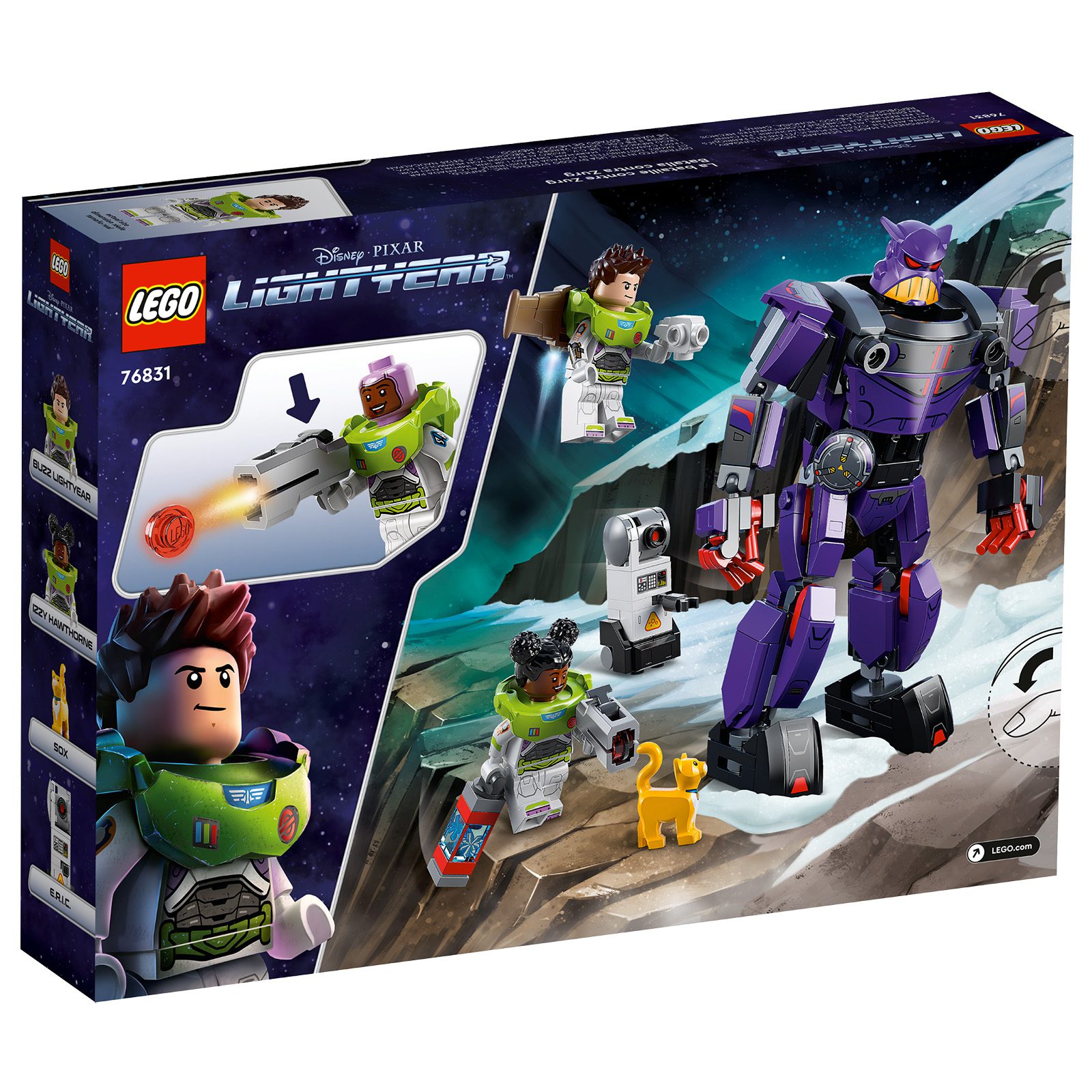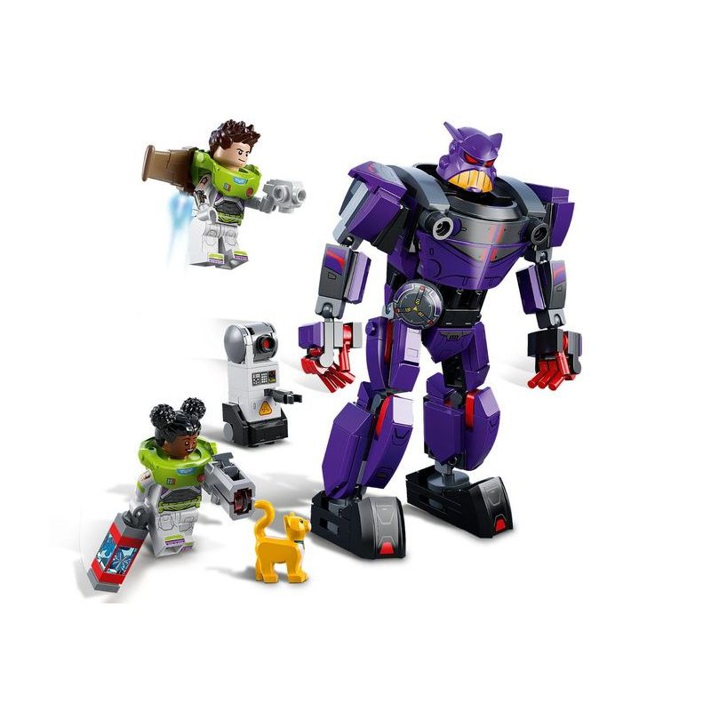 - Characters from the film – Zurg Battle (76831) comes with 2 minifigures, including Disney’s Buzz Lightyear, a LEGO® robot cat figure, a buildable robot and a posable mech