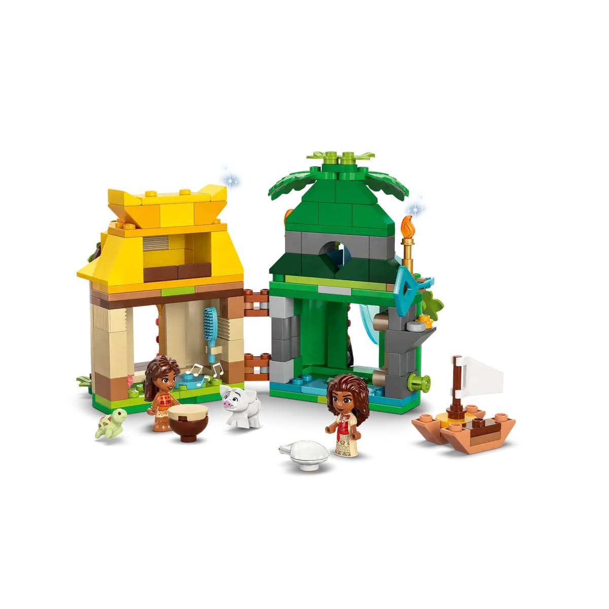 - Building kit micro-world – The buildable toy features a double-sided island/house model with a key, Moana and little sis Simea LEGO® ǀ Disney micro-doll figures and a Pua LEGO ǀ Disney animal figure