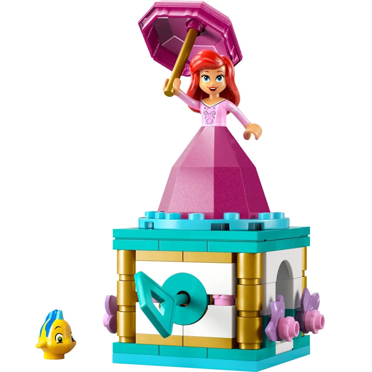 - Engaging building toy – Turn the key on the stand to spin the plate and twirl Ariel around, then store the LEGO® ǀ Disney mini-doll figure inside the ’diamond’ dress using the umbrella as a lid