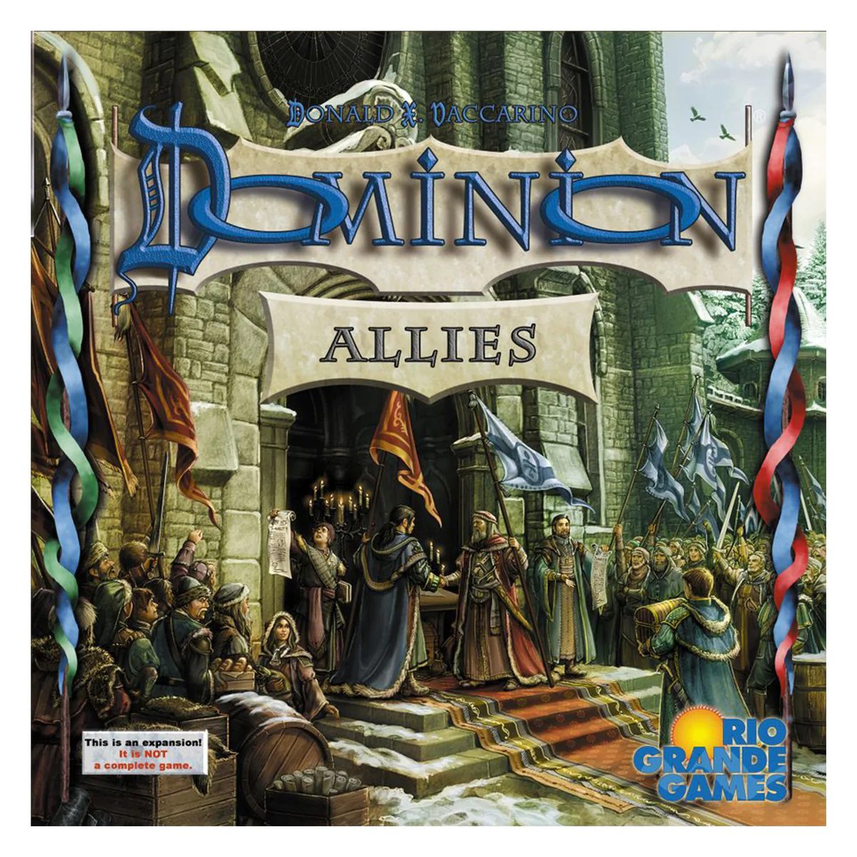 Dominion: Allies, the 14th expansion in the Dominion series, contains 400 cards, with 31 new Kingdom card piles that contain allies who will do favors for you and split piles that you can rotate.