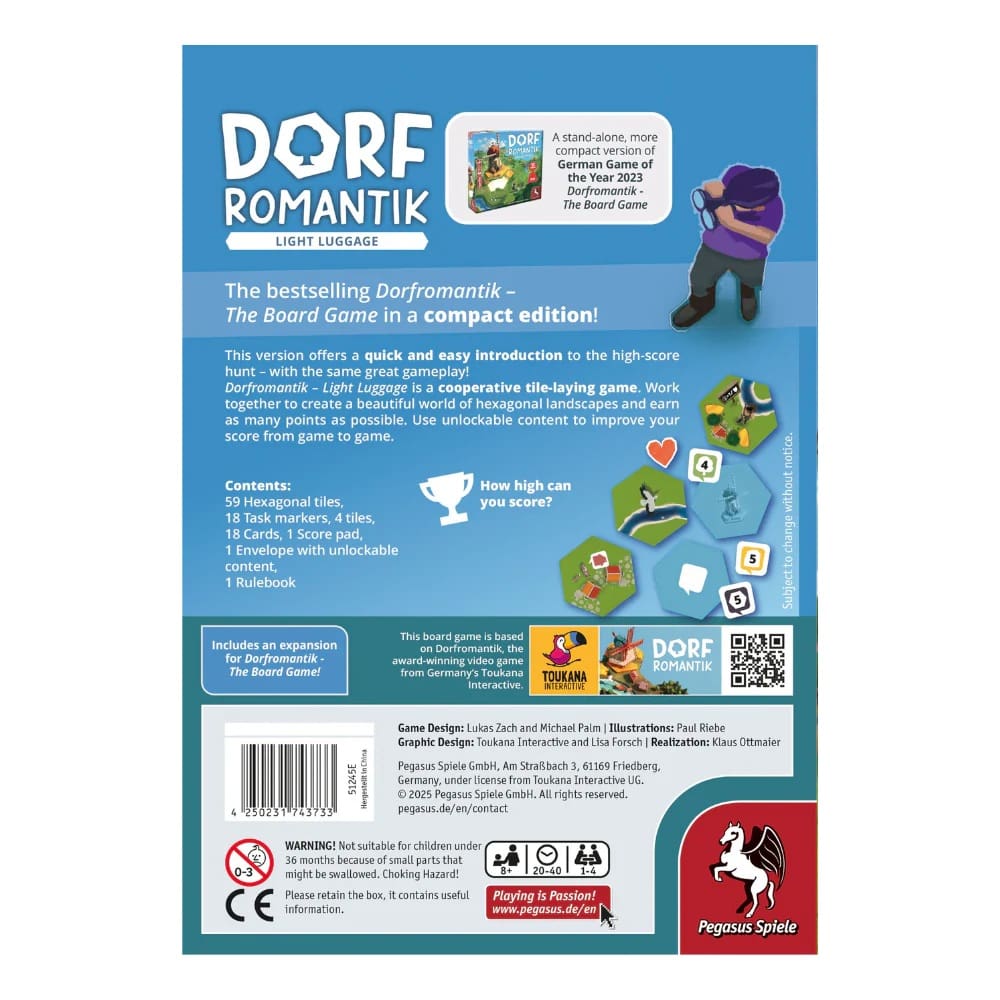 Take the tranquillity of Dorfromantik on the go — a compact, campaign-driven edition built for travel, picnics, or a quick lunch-break session. Dorfromantik: Light Luggage packs the cooperative tile‑laying charm of the award‑winning original into a magnetic travel box with a fresh, stand‑alone campaign that grows as you play.