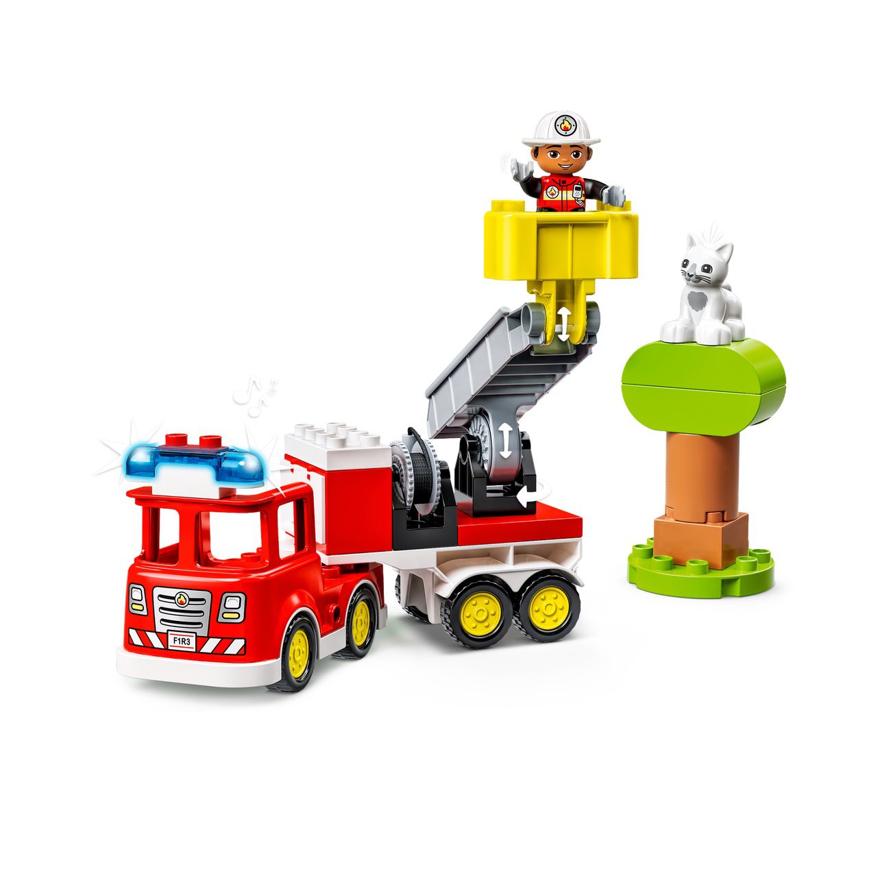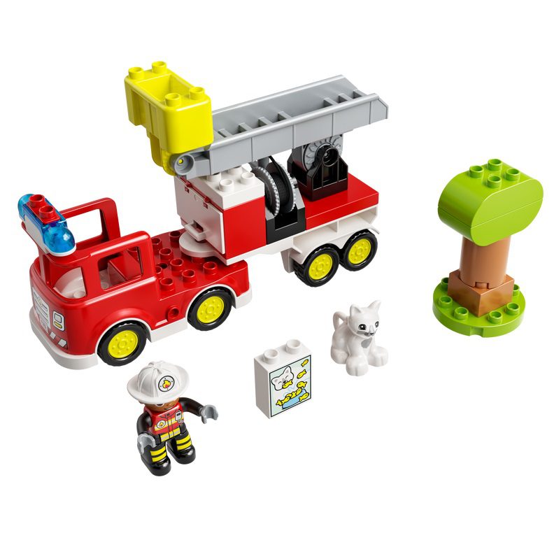 - Authentic details – The set includes a firefighter and a cat LEGO® DUPLO® figures, plus a buildable tree and a multi-function fire engine with flashing lights and siren (batteries included)