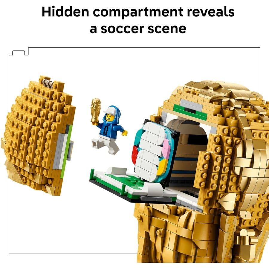 Once completed, the trophy stands as an eye-catching piece of soccer décor, perfect for display in a bedroom, games room, or office. With 2,842 pieces, the build offers a substantial and satisfying project for sports fans and LEGO enthusiasts alike, making it a fantastic gift for birthdays, special occasions, or anyone passionate about the beautiful game.