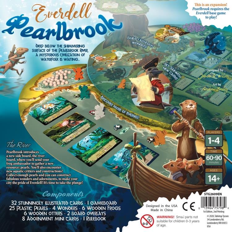 Pearlbrook introduces a new side board, the river board, where you’ll send your frog ambassador to gather a new resource: pearls. You’ll also encounter new aquatic critters and constructions! Collect enough pearls and you can construct fabulous wonders and adornments, to make your city the pride of Everdell!