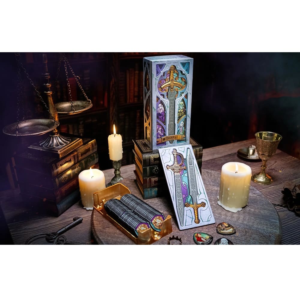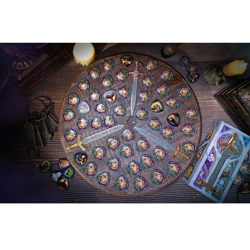 Excalibur is a party game filled with bluffing and subterfuge. Draw tiles from Avalon to find Excalibur, then use the powers of Arthurian legends to keep it safe from the other would-be kings ’round the table!