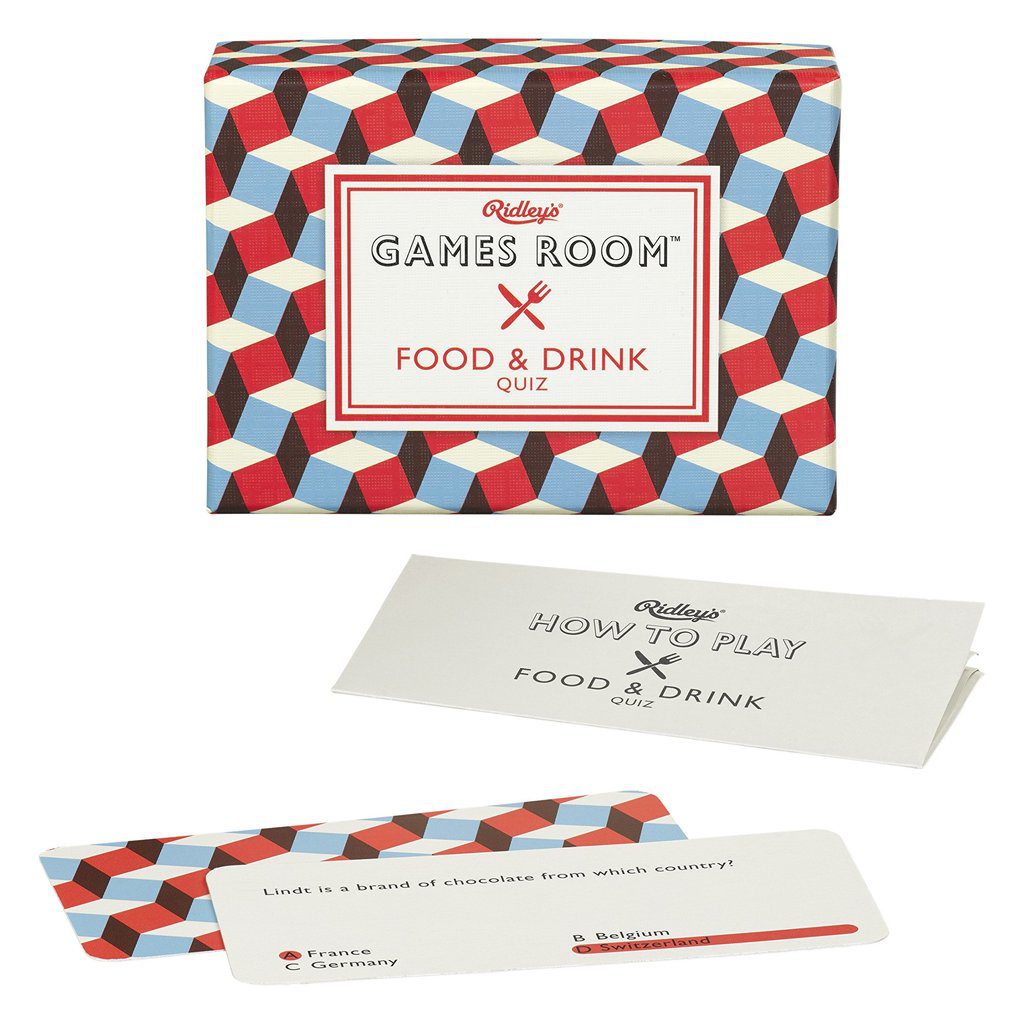 Do you know your donuts from your croissants? This tasty Food & Drink knowledge quiz includes 140 question cards with multiple choice answers. Presented in a geometric print box.