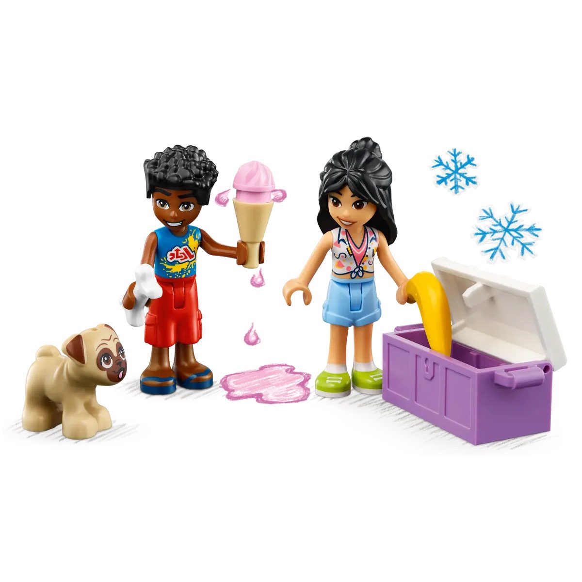 - 2 mini-dolls and accessories – The set comes with LEGO® Friends characters Liann and Zac, a pet pug character, plus a dolphin, a toy beach buggy, a cooler and a wave accessory