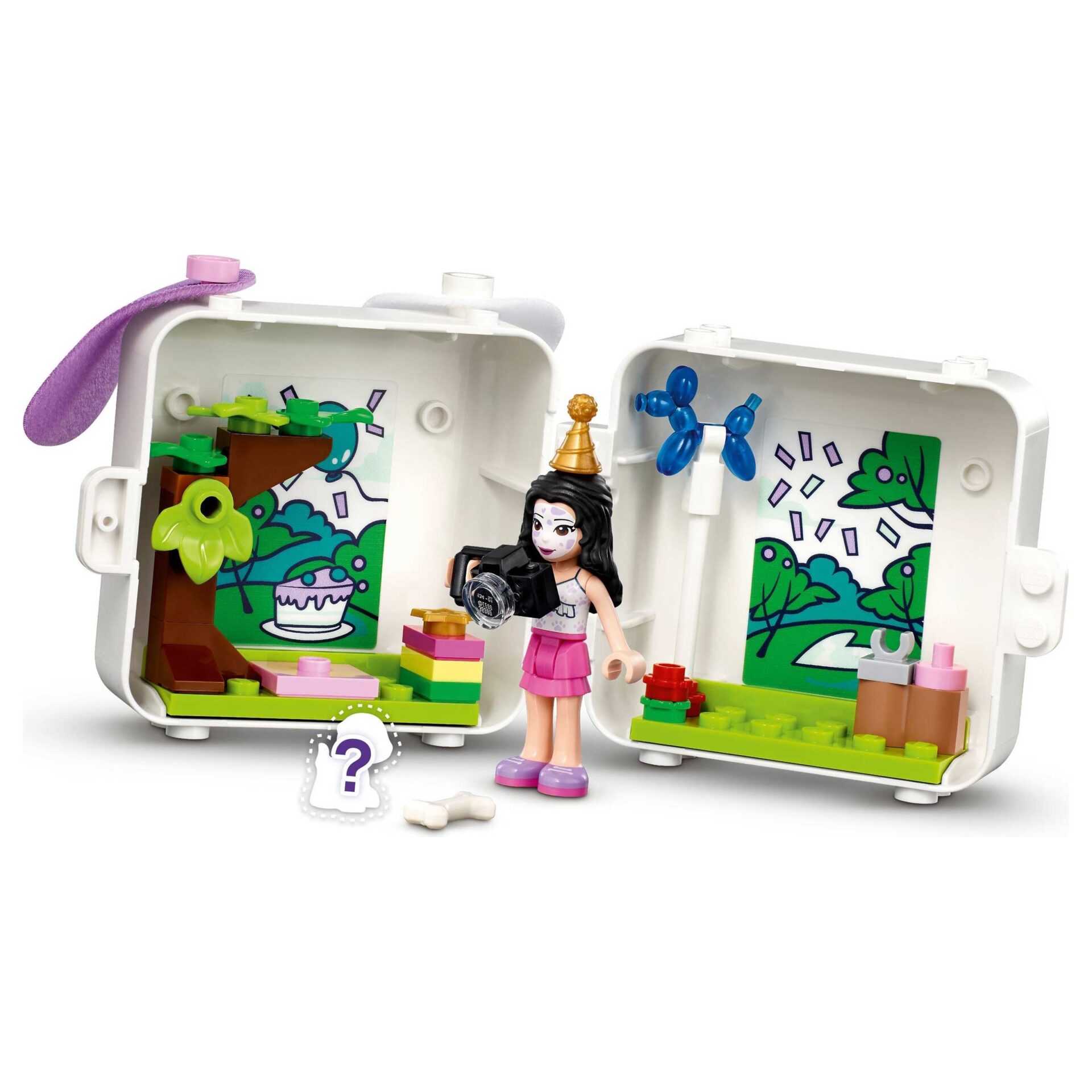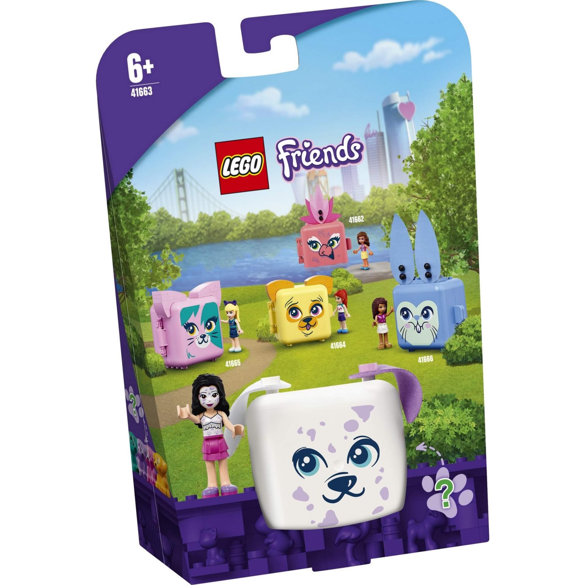 - Provide adventures on the move with LEGO® Friends Emma’s Dalmatian Cube 41663 portable animal toy set. Kids can play out a pet party scene then close the box of their new toy for fun on the go.