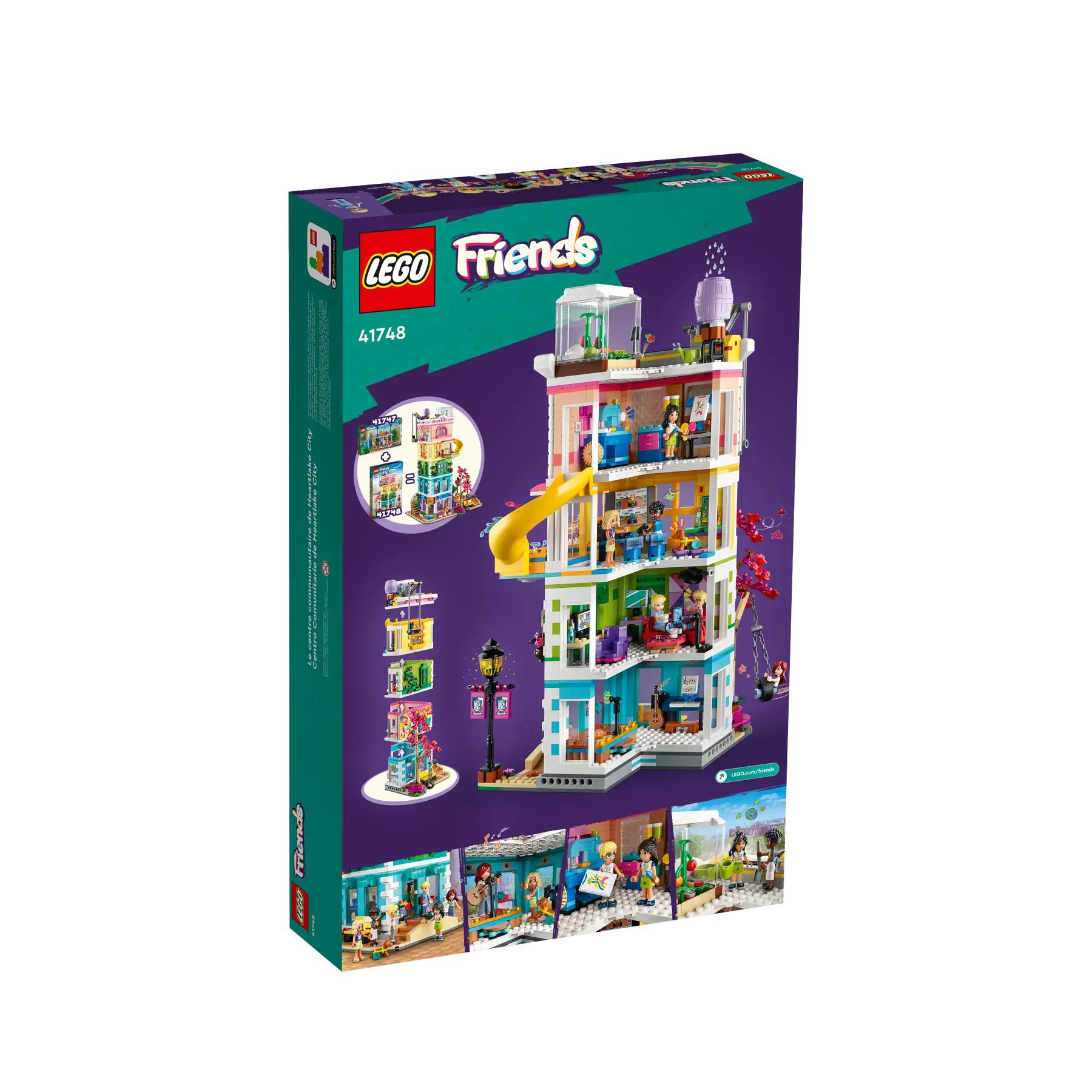 - Dimensions – The LEGO® Friends Heartlake City Community Center building measures over 16 in. (41 cm) high, 9 in. (23 cm) wide and 11 in. (28 cm) deep