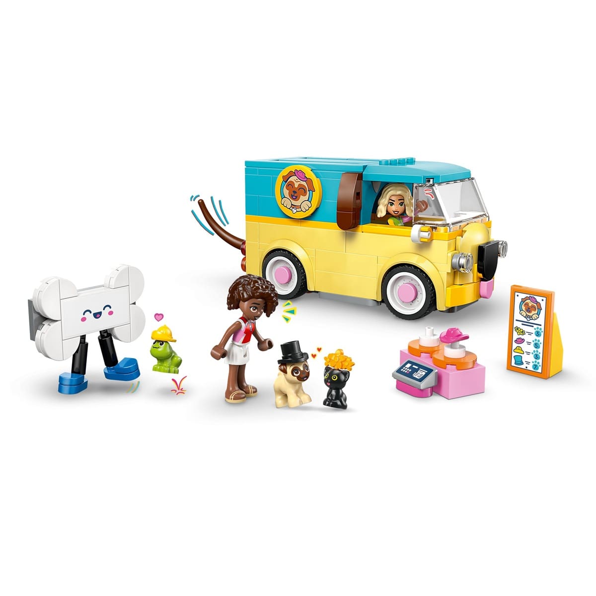 Kids ages 6 and up can dive into imaginative pet-themed adventures with the LEGO® Friends Pet Accessories Van. This playful set features a charming pug-shaped van — complete with a tail that wags as it rolls — plus two minidolls and three adorable animal figures: a kitten, a dog and a frog. It’s the perfect setup for little builders who love pets, storytelling and fun surprises.