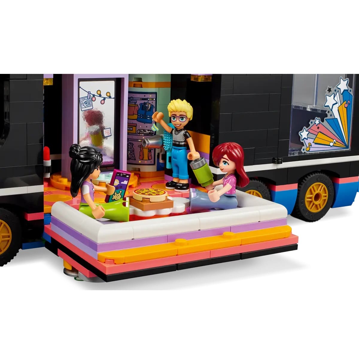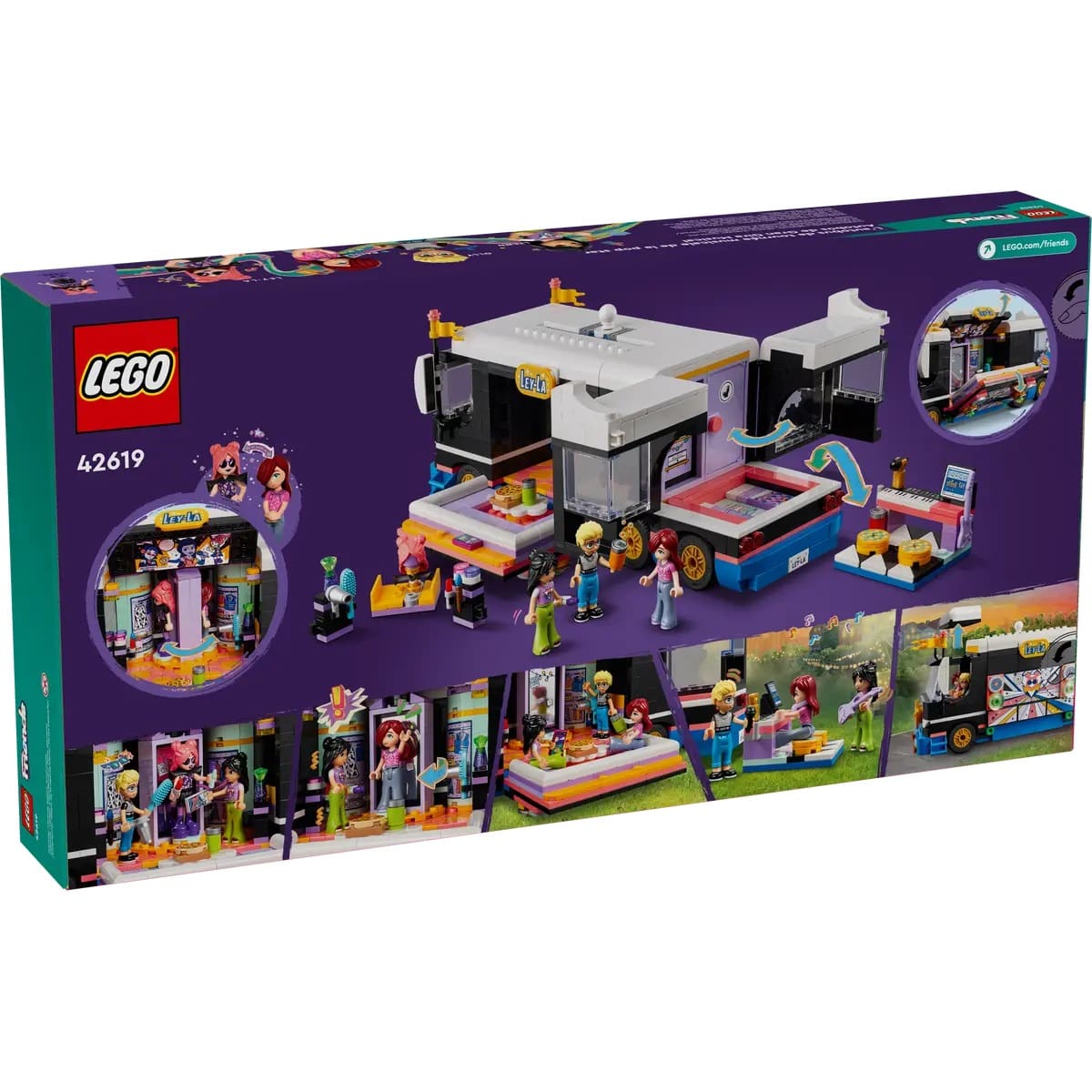 Bring role play to life with this LEGO® Friends Pop Star Music Tour Bus toy playset (42619) for girls, boys and kids aged 8+. The set includes a buildable bus and backstage area with accessories and 4 LEGO Friends characters.