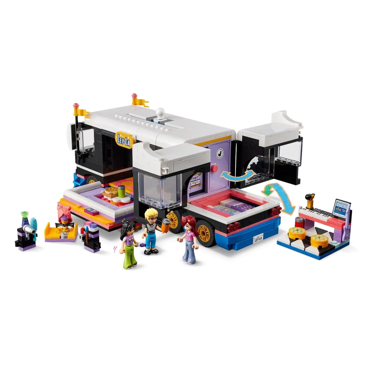 - Tour bus playset toy for musical role play – The LEGO® Friends Pop Star Music Tour Bus set for girls, boys and kids aged 8 plus includes 4 mini-doll characters and lots of accessories
