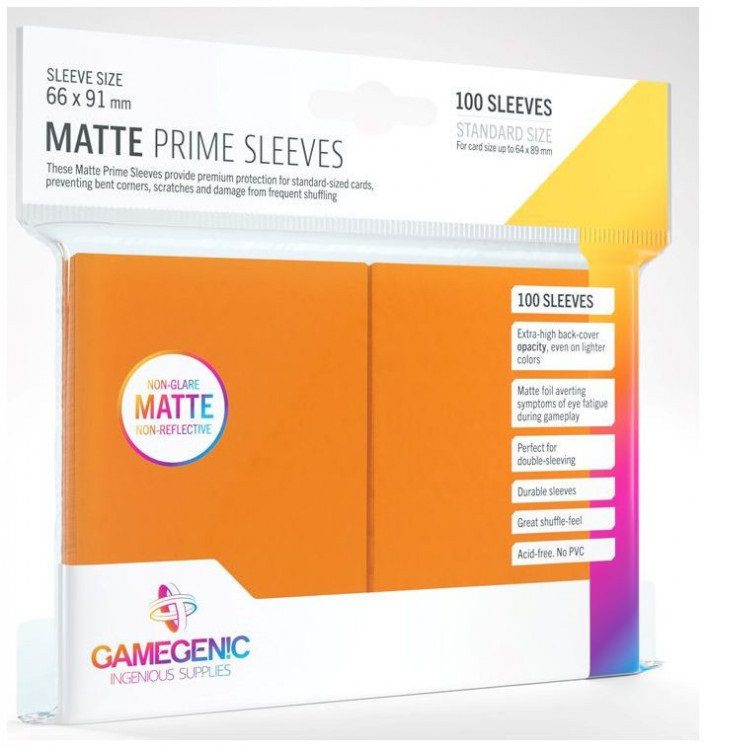 Card-sleeves are an essential requirement to protect your valuable gaming cards. These Matte Prime Sleeves provide a premium protection for standard-sized cards and prevent them from bent corners, scratches or damages by frequent shuffling. The matte front blocks annoying reflections at the sleeves, to ensure that the card is visible from all sides and avoiding symptoms of eye fatigue during gameplay. Due to their fine, matte back side players will experience a great shuffle feel and don’t to have struggle with slipping deck staples. The sleeves are optimized in size to ensure a professional protection and work perfectly for double-sleeving (sleeve-within-sleeve). One pack contains 100 sleeves, matching also larger deck formats.