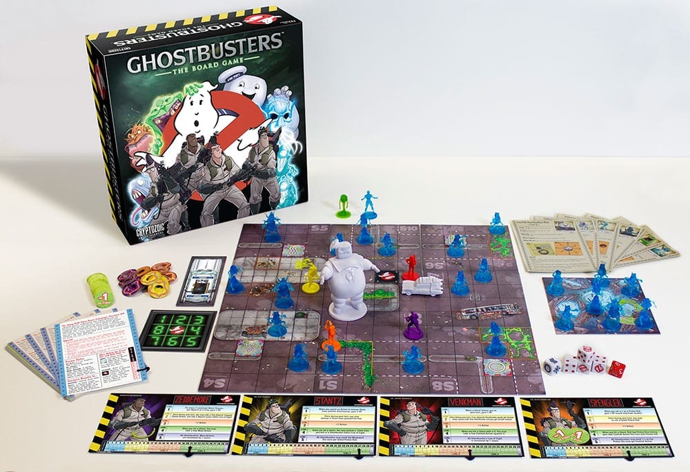 Ghostbusters: The Board Game comes with more than forty plastic figures, including the four Ghostbusters, Slimer, Stay Puft Marshmallow Man, Indulnas, and numerous Galloping Ghouls, Gruesome Twosomes and Boogaloo. The game board is created with double-sided modular pieces, increasing the game’s replayability for scenarios and customization.