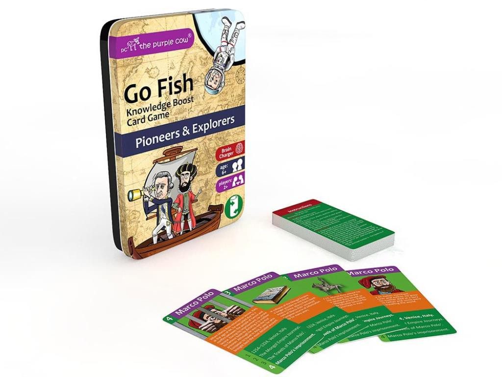 The Purple Cow “Go Fish” is a FUN and easy to play card game also known as Quartet, Foursomes and Trumps around the world – detailed instructions inside. By playing Purple Cow’s “Go Fish” series, children will learn exciting facts about the world around us.